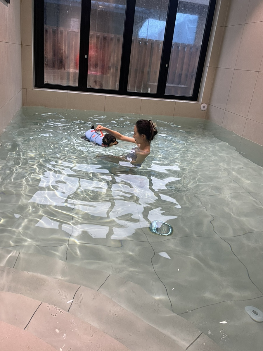바베큐 먹고 첫날은 밖에 자쿠지 들어감